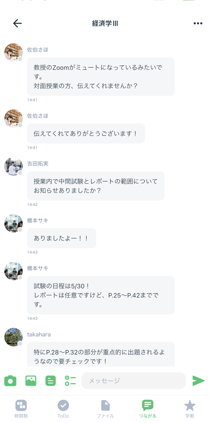 授業ごとのトークルームやDMで、友だち以外のユーザーとも学内のリアルな情報を交換できます。もちろん、匿名もOK!