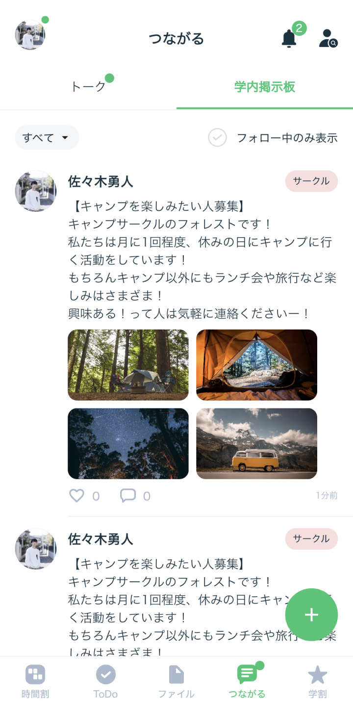 学内掲示板では、大学生活に関する質問やサークルの勧誘、いらなくなった教科書の売買などを行えます。同じ大学の学生だけの空間でキャンパスライフを充実させよう!